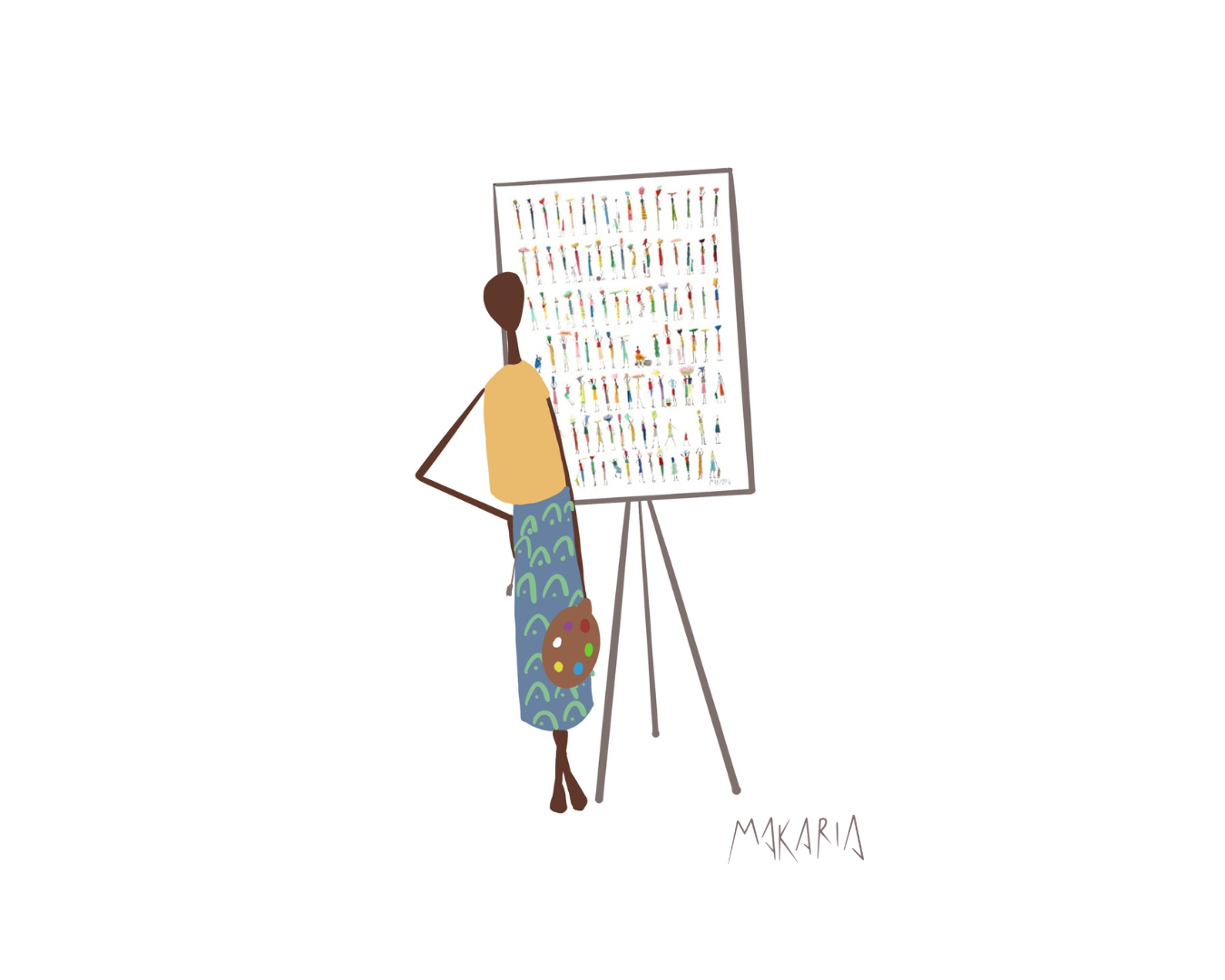 Como artista contemporánea escondida detrás de Makaria, quisiera reivindicar esta hermosa misión del arte y, si no es mucho atrevimiento, traducirla en obras concretas. Hace unas semanas, entregando la nueva obra Ebele XL en lienzo, el hijo de los clientes, con tan solo dos años de edad, exclamó: “¡Bonito!”. Fue un consuelo interior, pues el alma sencilla de un niño ve con sus ojos limpios y habla con su boca sincera. Puede ser, quizás, el mejor crítico de arte para todas las épocas. Agradecida por su sentencia, confirmo mi postura: el trípode «verdad-bien-belleza» ha de latir durante todo el proceso artístico.