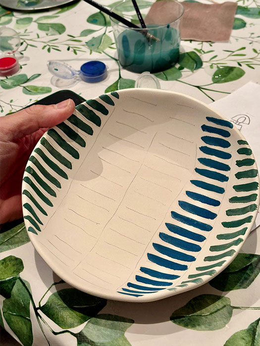 Tras aproximadamente dos horas de taller, las piezas quedan finalmente esmaltadas y listas para pasar al horno. Durante la semana siguiente se cuecen y pueden recogerse ya terminadas.