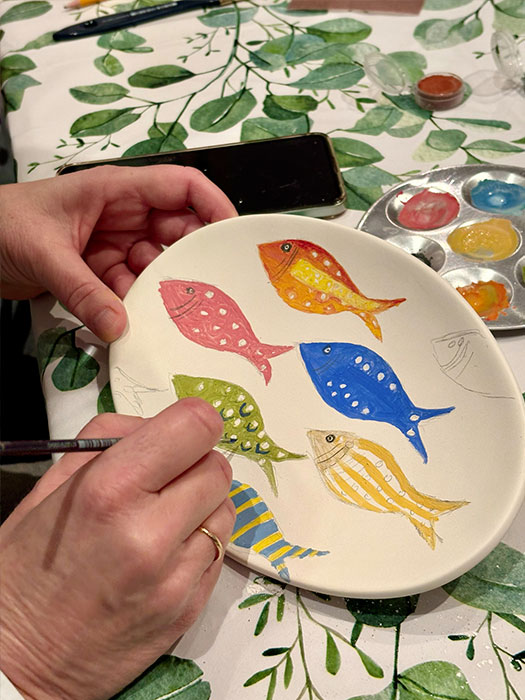 Nuestros talleres están dirigidos a adultos y jóvenes a partir de 14 años y no requieren conocimientos previos. Cada alumno recibe dos piezas de cerámica bizcochada, es decir, piezas que ya han pasado la primera cocción y están listas para ser pintadas y esmaltadas, como si fueran un lienzo en blanco.